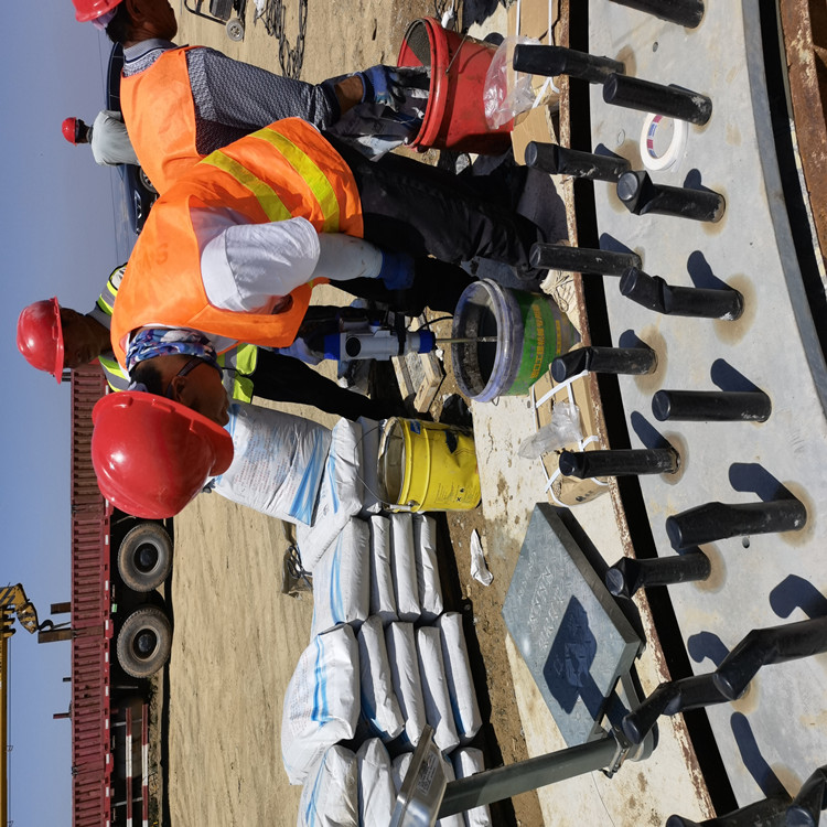 根据设备机座的实际情况,选择相应的灌浆方式,由于风电灌浆料具有很好的流动性能,一般情况下,用"自重法灌浆"即可,即将浆料直接自模板口灌入,完全依靠浆料自重自行流平并填充整个灌注空间;若灌注面积很大、结构特别复杂或空间很小而距离很远时,可采用"高位漏斗法灌浆"或"压力法灌浆"进行灌浆,以确保浆料能充分填充各个角落。