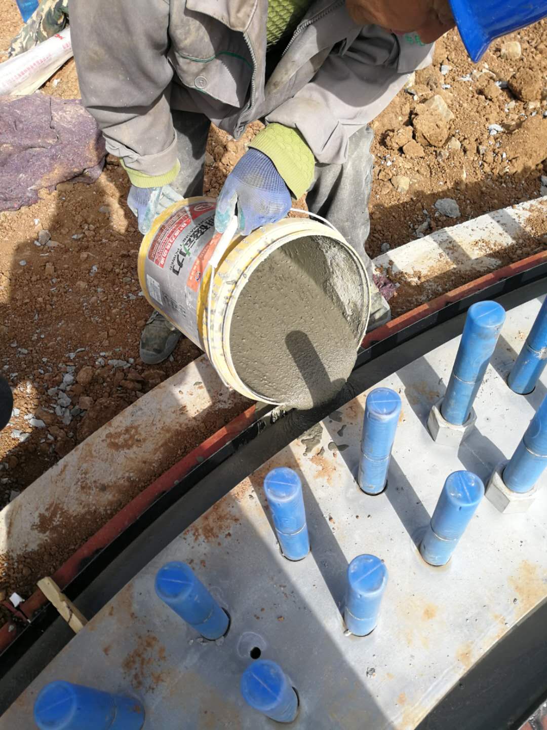 ·在灌浆前的4-24h期间,对混凝土基础面施於湿润, 但不得有积水。